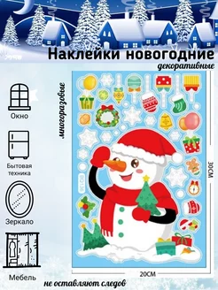 Новогодние наклейки на окна 20 см х 30 см Снеговик
