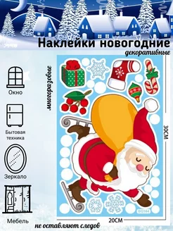Новогодние наклейки на окна 20 см х 30 см Дед Мороз