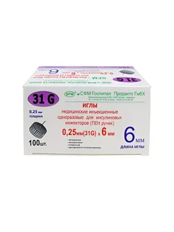 Иглы мед инъекц одн д инсулин инжекторов 31G 0,25Х6ММ
