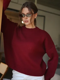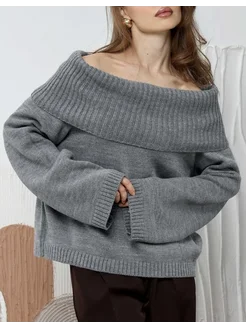 Свитер оверсайз с открытыми плечами теплый пуловер