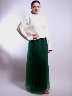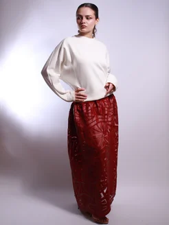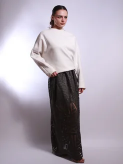 Юбка макси сетка эко-кожа, кружево, ЭТНО
