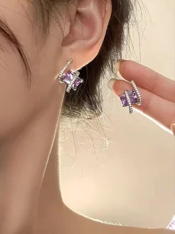 Серьги зигзаг светло фиолетовый камень