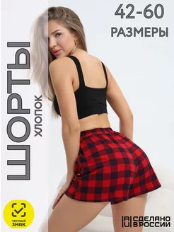 Шорты женские в клетку домашние на резинке новогодние