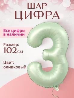Воздушный шар цифра 3 три оливковый