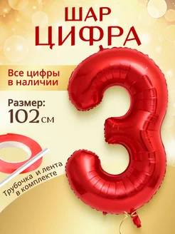 Воздушный шар цифра 3 красный