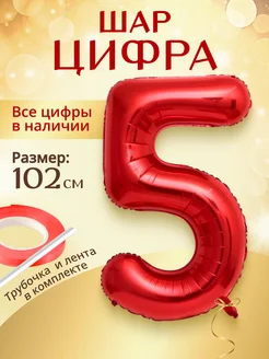 Воздушный шар цифра 5 красный