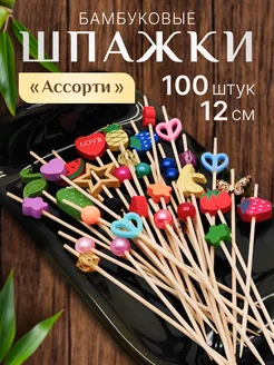Шпажки для канапе деревянные Микс 100 шт