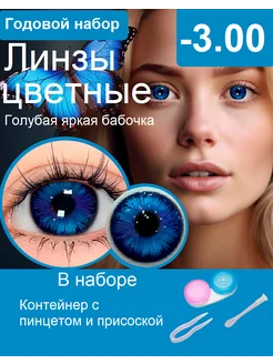 Цветные линзы на год-ярко синие-МАГИЧЕСКИЙ 0