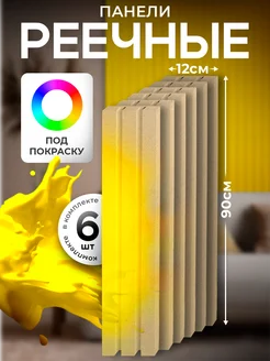 Стеновые панели реечные МДФ, под покраску, 90х12 см, 6 шт
