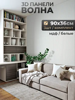 Стеновые панели реечные МДФ, 3D, Волна, 90х36 см, 3 шт