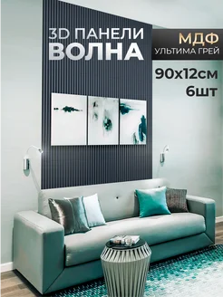 Стеновые панели реечные МДФ, 3D, Волна, 90х12 см, 6 шт