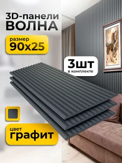 Стеновые панели реечные МДФ, 3D, графит, 90х12 см, 6 шт