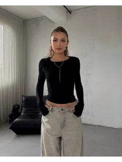 Лонгслив облегающий с длинным рукавом