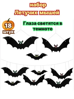 Набор летучих мышей со светящимися глазами для Хэллоуина