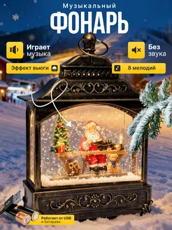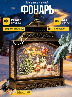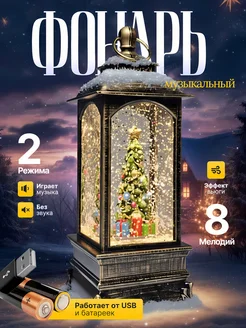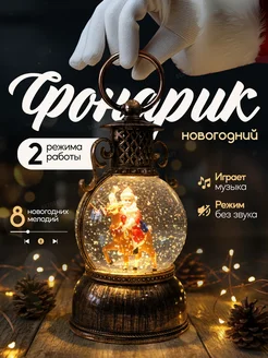 Фонарь новогодний музыкальный светильник со снегом подарок
