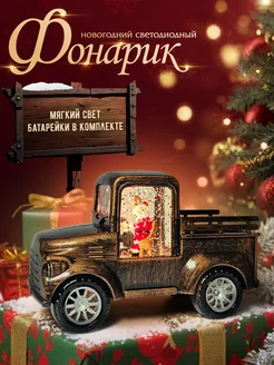 Новогодняя машина светильник фонарь с подсветкой и снегом
