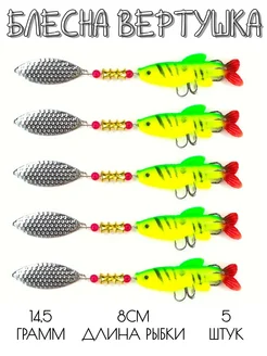 Блесна вертушка с силиконовой рыбкой, набор 5 штук