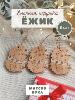 Елочные игрушки деревянные ежик на елку 3 шт светло-бежевые