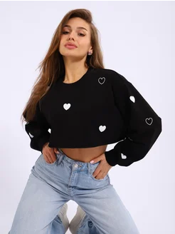 Модный укороченный свитшот сердечки