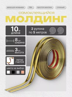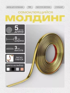 Молдинг самоклеящийся для декора гибкий Золото