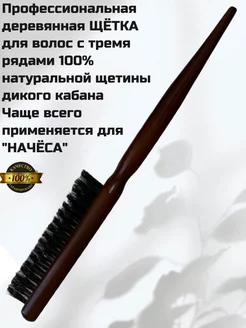 Щётка для начёса с натуральной щетиной трехрядная