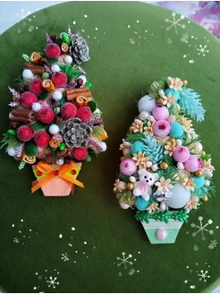 Ёлочки новогодние ручной работы (магнит-топиарий)