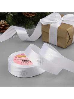 Лента атласная упаковочная Новый год «Снежинки» 23 пог.м
