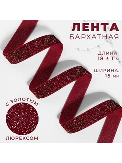 Лента бархатная с золотым люрексом, 15 мм, 18 м, бордовый