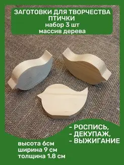Птички заготовка для творчества и декора 3 шт