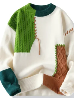 Свитер оверсайз вязаный с круглым воротом джемпер пэчворк