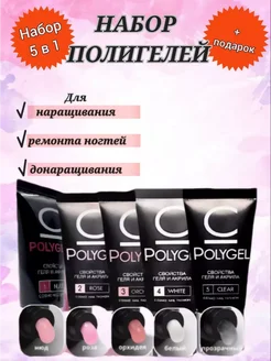 Набор полигелей для наращивания и моделирования ногтей 5 шт