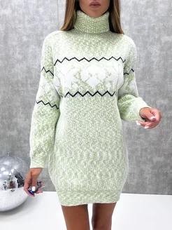 Свитер удлиненный оверсайз джемпер теплый с горлом