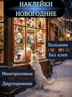 Наклейки с котиками на окна новогодние 2026 двусторонние