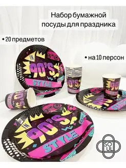 Набор одноразовой посуды для праздника "В стиле 90-х"
