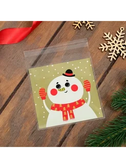 100 шт. Пакет БОПП с липкой лентой, "Снеговик", 10 х 11 см