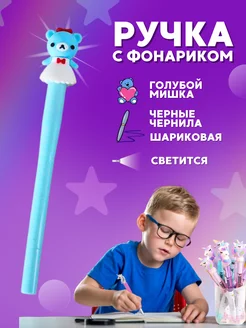 Ручка Мишка шариковая детская светящаяся, 1 шт