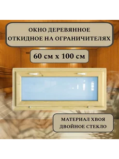 Окно для бани деревянное 60*100см откидное с ограничителями