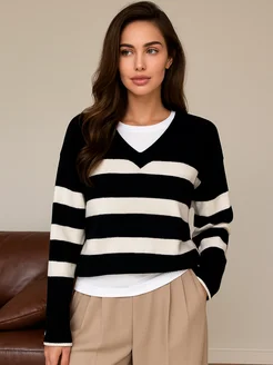 Джемпер поло в полоску оверсайз