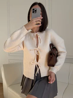 Кардиган на завязках вязаный оверсайз
