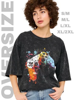 Футболка варенка оверсайз с принтом Джойстик Черная