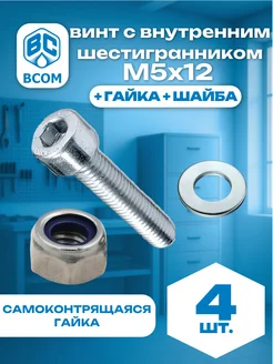 Винт DIN912 М5х12, самоконтрящаяся гайка + шайба, 4 шт