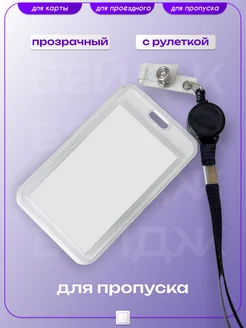 Бейдж для пропуска с рулеткой и лентой для школьника