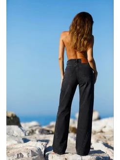 Джинсы черные широкие палаццо с высокой посадкой