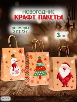 Новогодние подарочные крафт пакеты 21*11*27-3 шт
