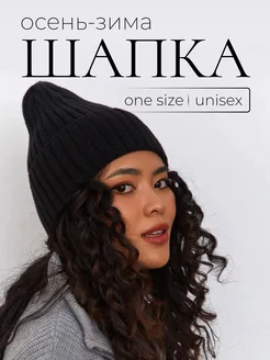 Шапка бини стильная женская осенняя зимняя демисезонная вяза