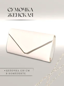 Клатч вечерний, сумочка маленькая белая на цепочке