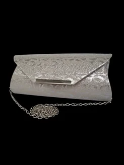 Клатч вечерний, сумочка маленькая серебристая на цепочке