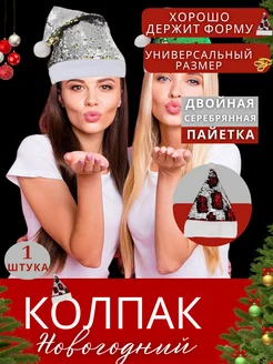 Новогодний колпак Деда Мороза, серебряно - красный, 1 шт