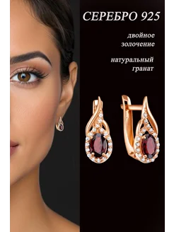 Серьги серебряные позолоченные гранат