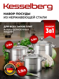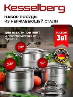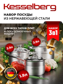 Набор кастрюль из нержавеющей стали с крышкой ковш